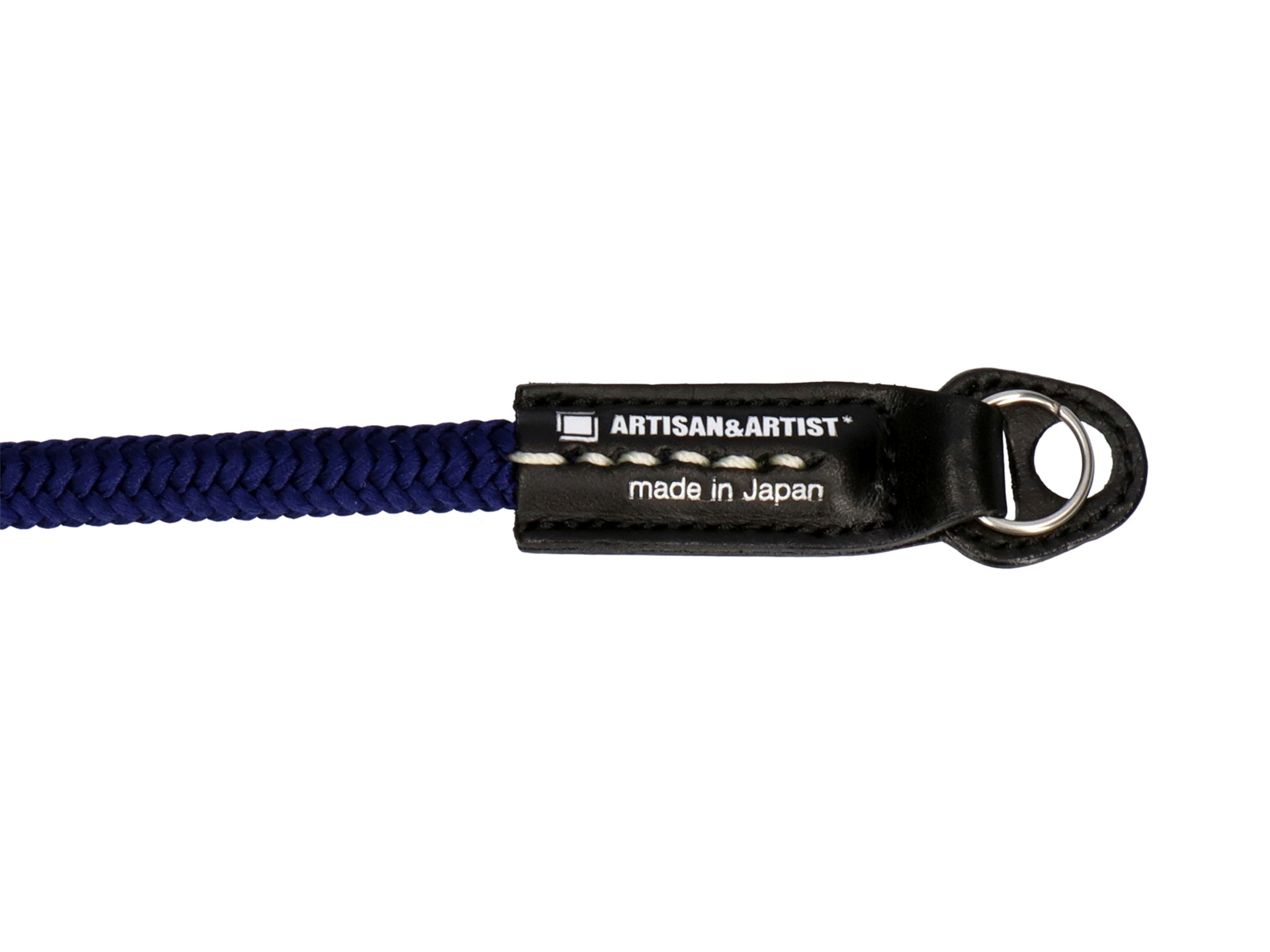 組紐は八つ折紐の外側に唐織を施した特殊な二重構造となっており、ほどよい伸縮性と丈夫さ、さらに肌へのあたりを考慮しています。手に巻き付けての撮影や結んで長さ調節が可能なのは、しなやかなシルク組紐ならではの機能。レザー固定部分の中央に施された補強用のホワイトハンドステッチは、ブランドを象徴するアイコニックなデザインです。