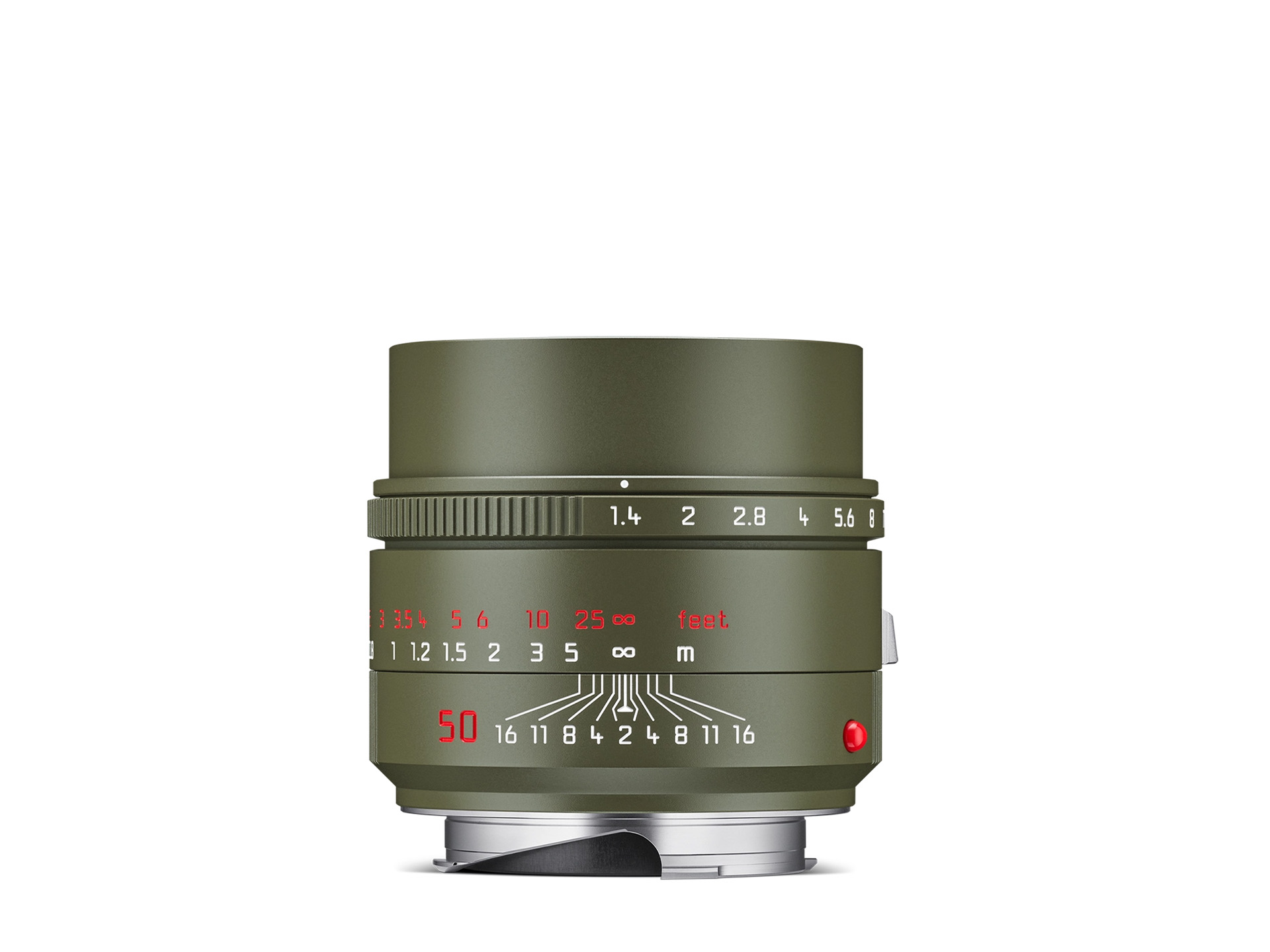 人気のマットなオリーブグリーンの耐久性の高い塗装と、調整スケールを繊細に引き立てるアクセントカラーが、このレンズに印象的な佇まいをもたらしています。